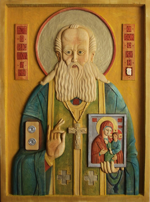 Новая работа художника - это уникальный образ святого преподобного Аристоклия Афонского, чудотворца Московского, выполненный в технике высокого рельефа, размер 80х60 см, дерево – липа, кипарис, тонировка, вставки – янтарь. Отличительной особенностью работы стали два мощевика из серебра – в них будут вложены частица мощей и частица гроба святого. Мощевики созданны по эскизу Олега Зон, а исполнены в мастерской «КАВИДА» - это первое для художника соработничество с членами Гильдии Храмоздателей, которое дало удивительный результат. Чин освящения иконы пройдет в Афонском подворье (дата будет сообщена дополнительно). Образ св.преп. Аристоклия Афонского станет 11 иконой, которая будет передана на территории Москвы и Московской области.